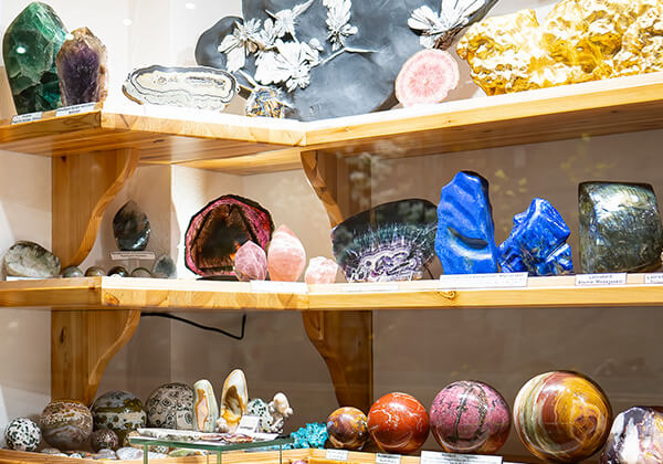 In insgesamt 10 thematisch gestalteten Ausstellungsbereichen präsentieren wir mehr als 60.000 Exponate aus der Welt der Edelsteine, Mineralien und des Bernsteins.